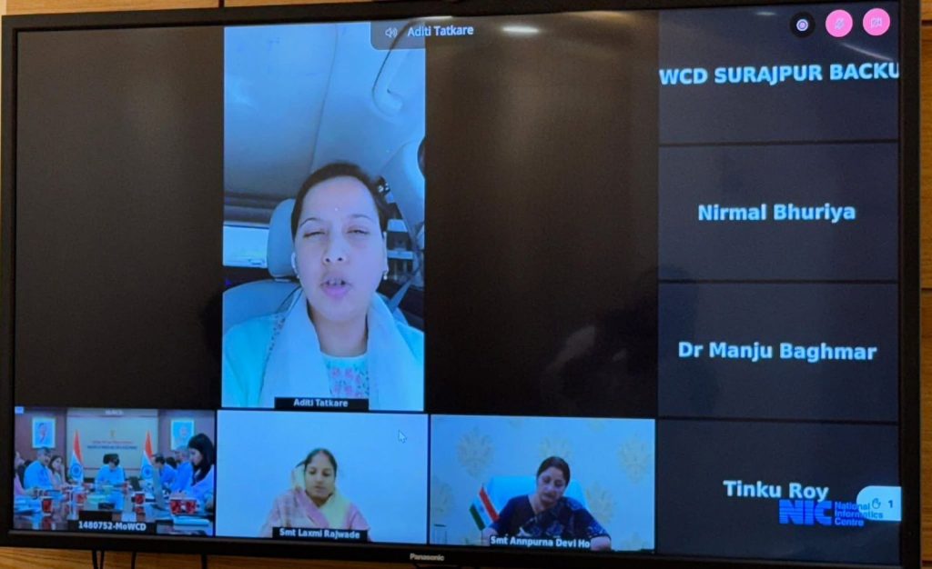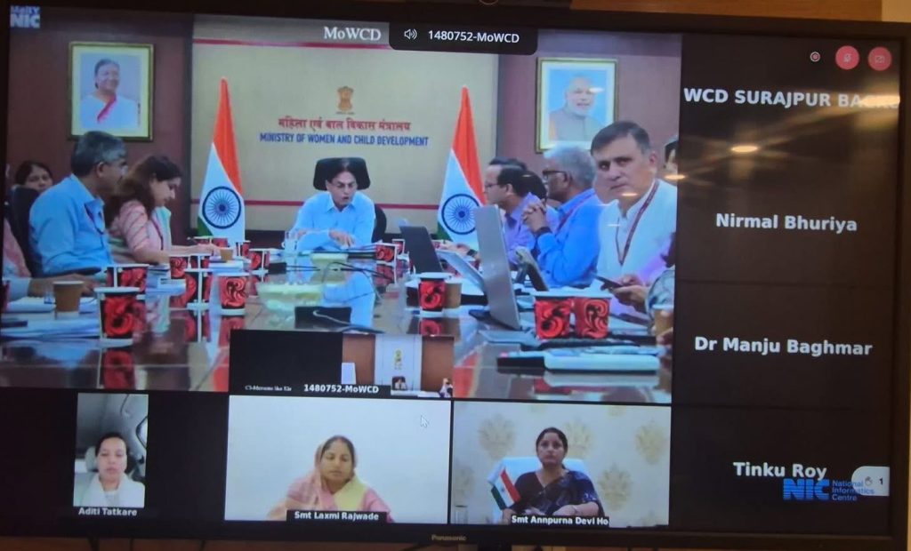 केंद्रीय महिला व बालविकास मंत्री अन्नपूर्णा देवी यांच्या अध्यक्षतेखाली दूरदृश्य प्रणालीद्वारे बैठक झाली. यावेळी विविध राज्याच्या महिला व बालविकास विभागाचे मंत्री दूरदृश्य संवाद प्रणालीद्वारे उपस्थित होते.