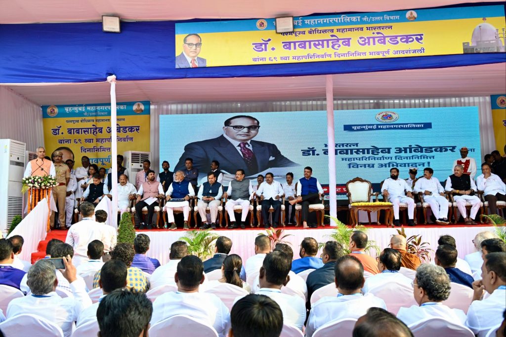 दादर येथील चैत्यभूमी येथे आयोजित भारतरत्न डॉ. बाबासाहेब आंबेडकर यांच्या 69व्या महापरिनिर्वाण दिनानिमित्त अभिवादन कार्यक्रमात ते बोलत होते. या वेळी मुख्यमंत्री देवेंद्र फडणवीस, उपमुख्यमंत्री एकनाथ शिंदे, विधानसभा उपाध्यक्ष अण्णा बनसोडे, कौशल्य विकास मंत्री मंगलप्रभात लोढा, सांस्कृतिक कार्य मंत्री ॲड. आशिष शेलार, सामाजिक न्याय मंत्री संजय शिरसाट यांच्यासह अनेक मान्यवर, लोकप्रतिनिधी, प्रशासकीय अधिकारी व मोठ्या संख्येने अनुयायी उपस्थित होते.